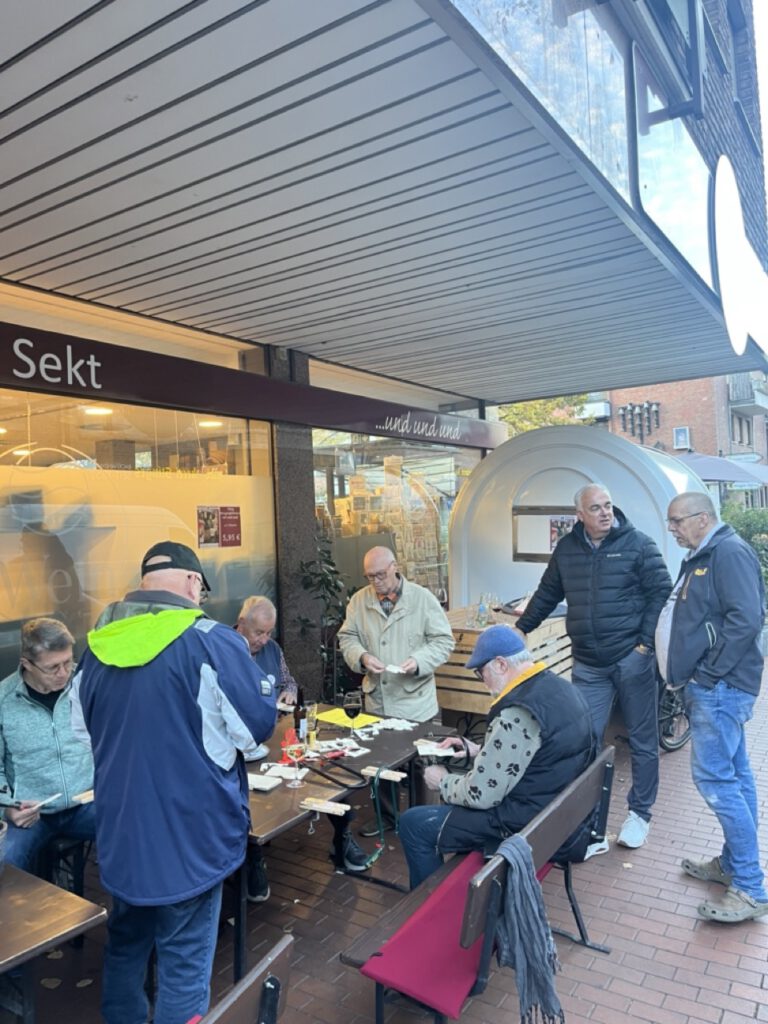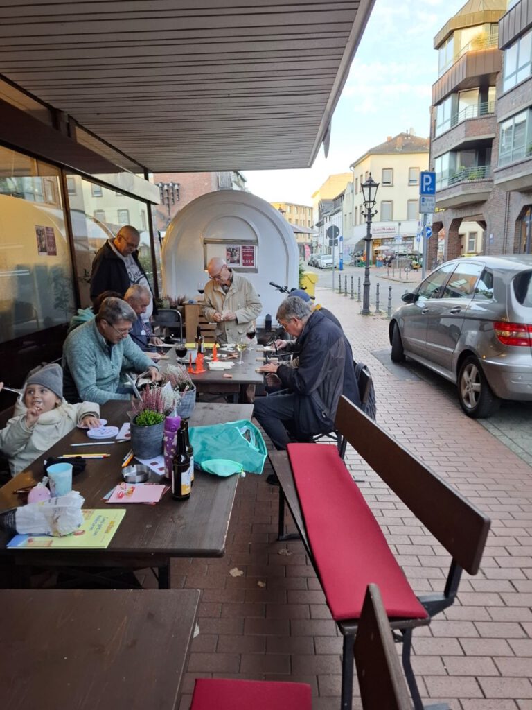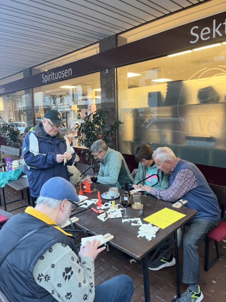 am Mittwoch, dem 05.11.2025 trafen 8 Sänger um 16:00 Uhr bei der Wein Gang in Dülken ein. Hier hatte unser Freund der Laubsäge Karl Hans bereits einige Brettchen vorbereitet und so konnten wir sofort mit dem Sägen der musikalischen Engelchen beginnen.