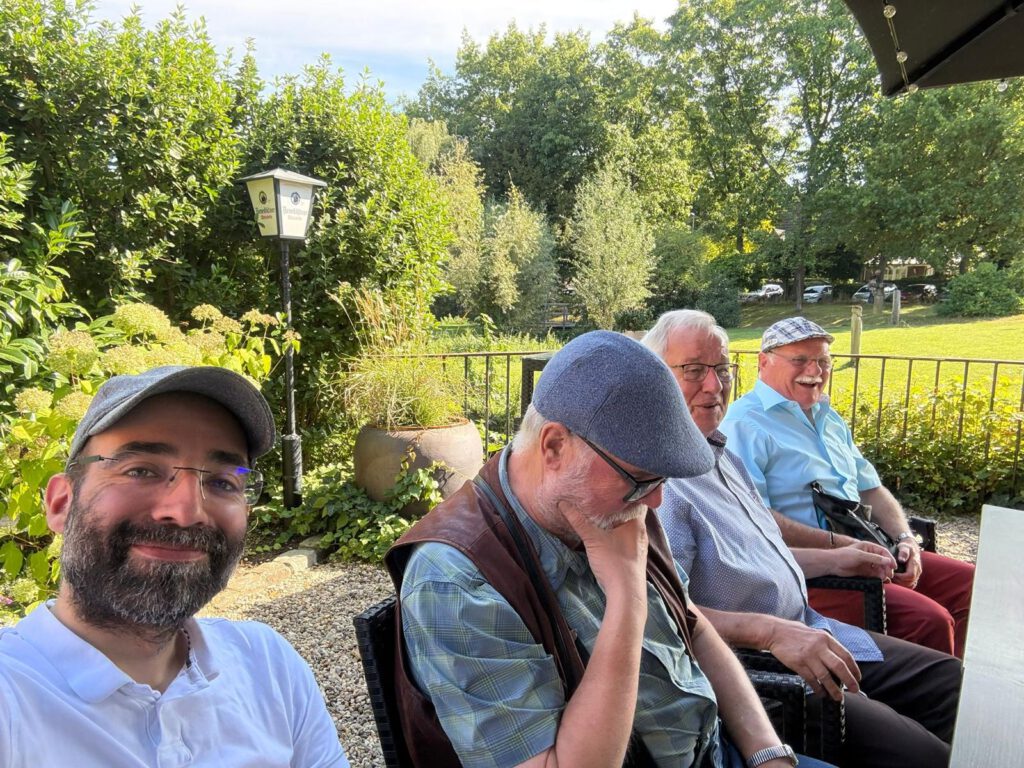 Unsere diesjährige Herrentour führte uns mit dem Kleinbus von Kröber in die Torschänke nach Brüggen, wo wir gegen 11:20 Uhr in den Biergarten einfielen. Die 10 Sangesbrüder begingen einen schönen Frühschoppen und es wurden auch einige Trinksprüche angestimmt. Gegen 12:30 Uhr traf auch unser lieber Sangesbruder Bernd ein, der mit der Fitz unterwegs war. Die Speisen des Hauses mundeten allen ausgezeichnet und es kamen diverse Runden Kaltgetränke bei heiterer Stimmung. Die Sonne lachte und wir hatten wirklich einen schönen Tag in Brüggen. Die Rückfahrt um 18 Uhr führte uns dann direkt ins Dülkener Bürgerstübchen, wo dieser schöne Tag in froher Runde sein Ende fand.